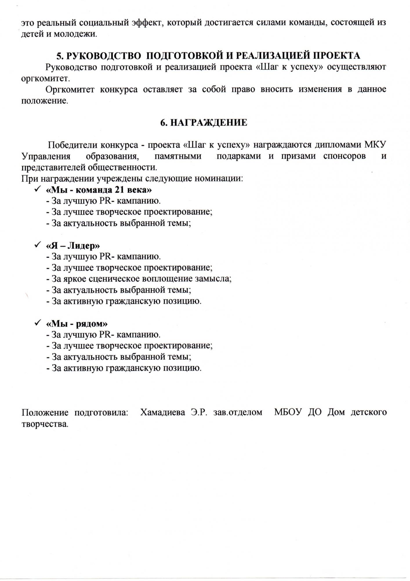Положения для конкурсов.