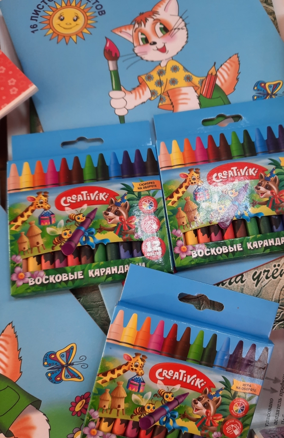 Сотрудники Дома детского творчества участвуют в оказании шефской помощи дошкольному образовательному учреждению Луганской области. Для проведения образовательной деятельности в детском саду передают детям канцтовары: альбомы, карандаши простые, восковые и цветные, кисточки, бумага цветная, настольные игры, ручки, детские книжки.
